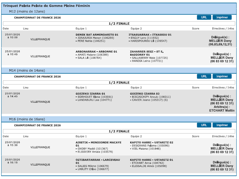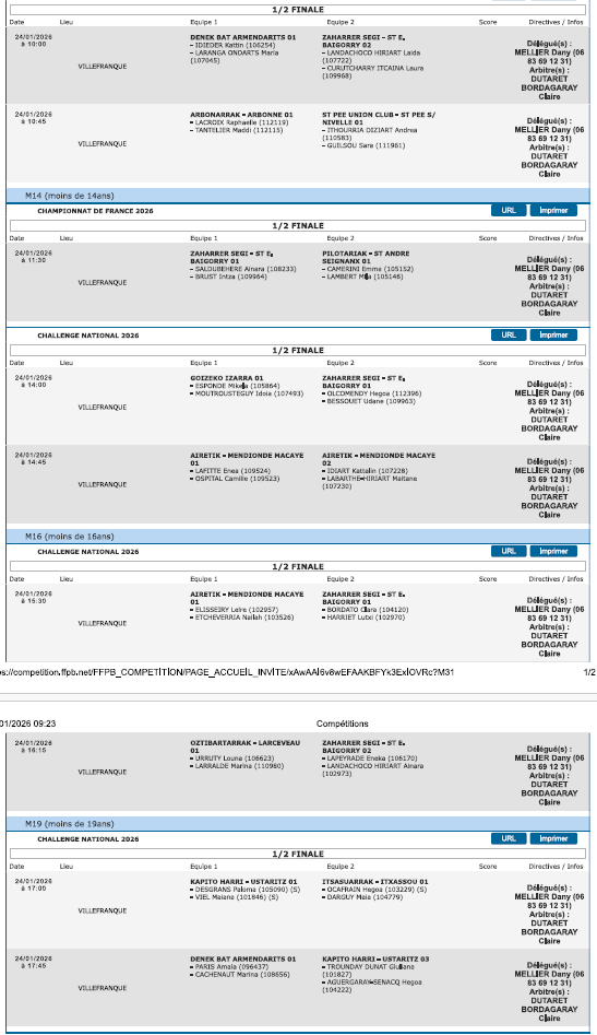 1/2 finales de Championnats de France et Challenges nationaux Féminins 2026