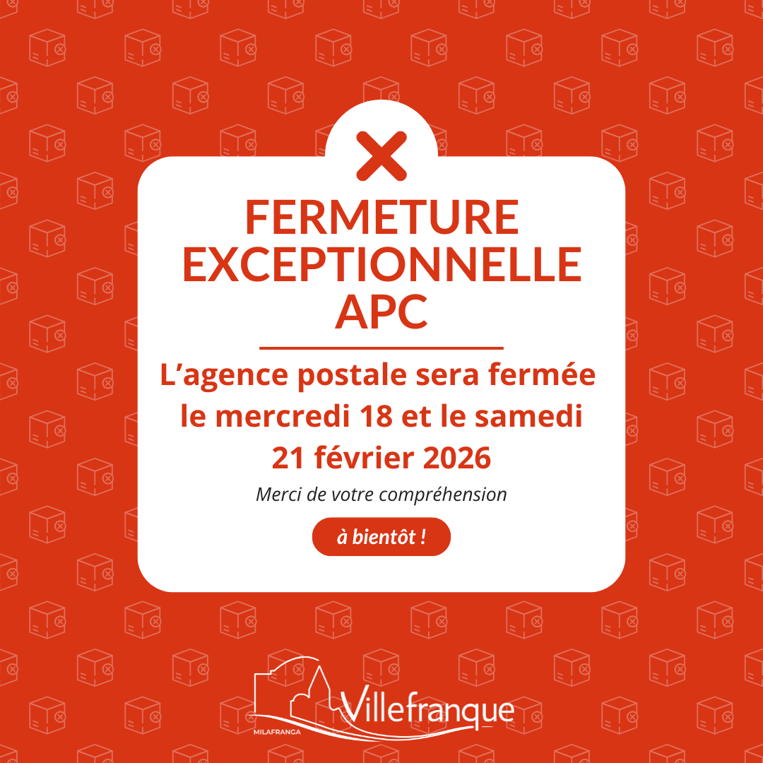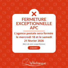 L'Agence Postale Communale sera exceptionnellement fermée le :Le mercredi 18 et le samedi 21 février 2026