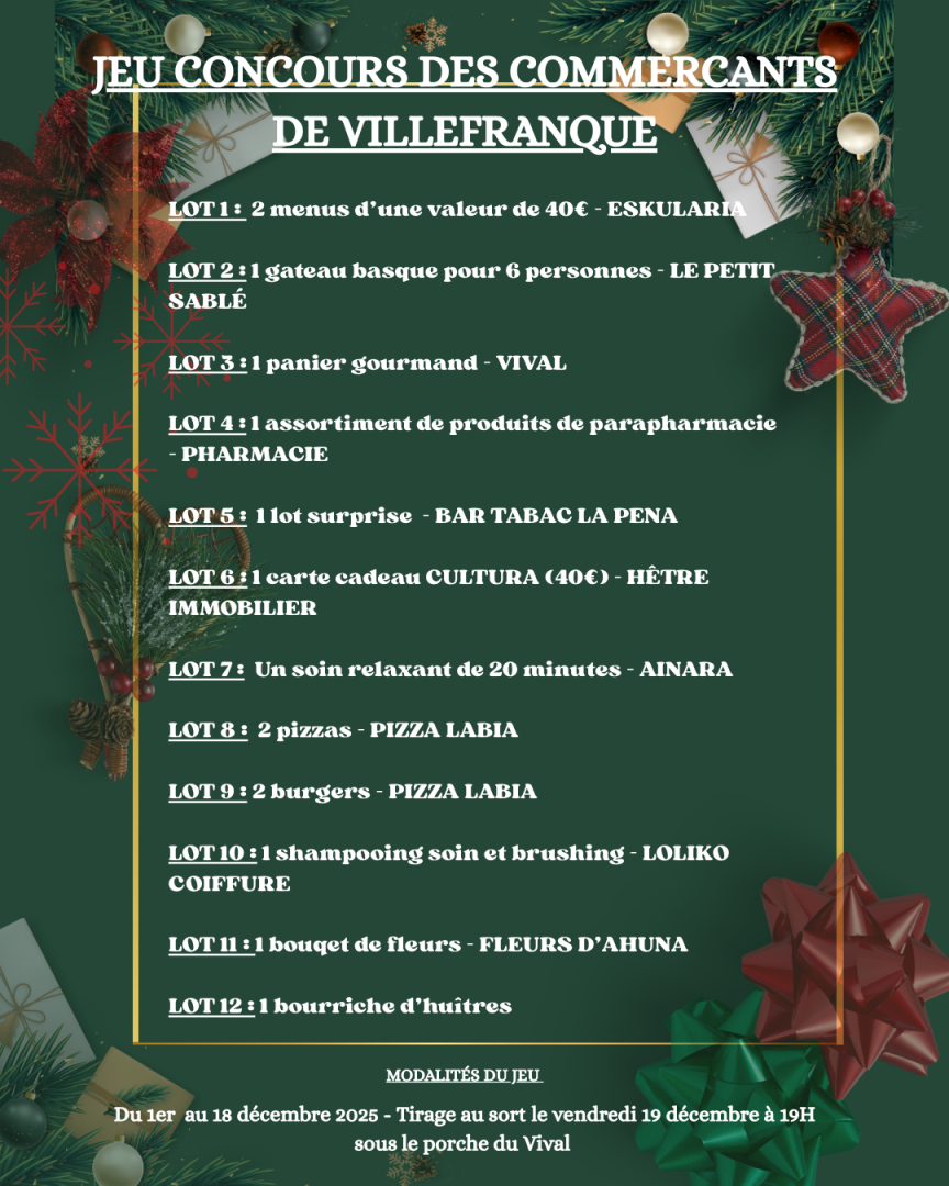 Les commerçants de Villefranque lancent leur jeu-concours de Noël, du 1er au 18 décembre