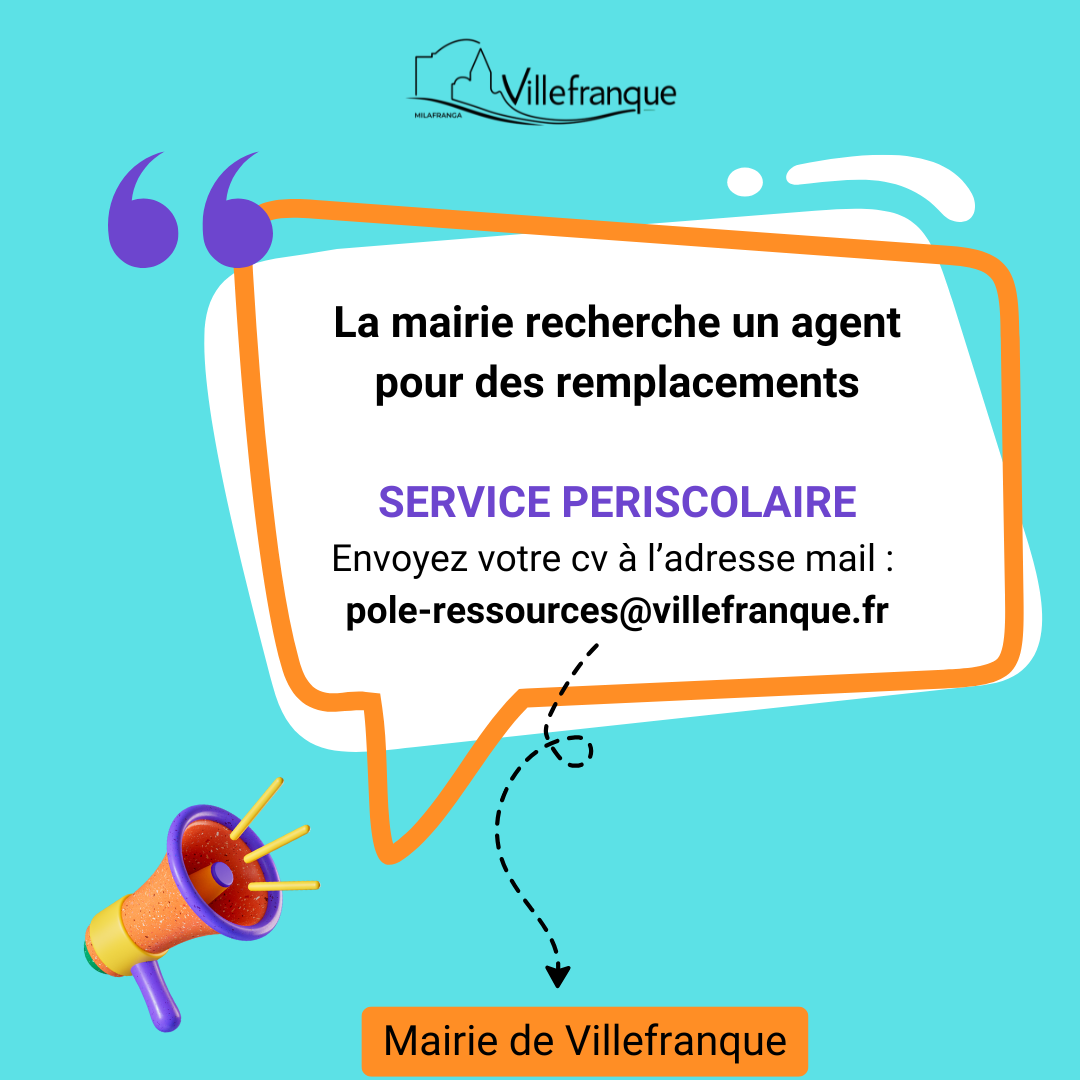 La mairie recherche un agent - Service Périscolaire - pour des remplacements.