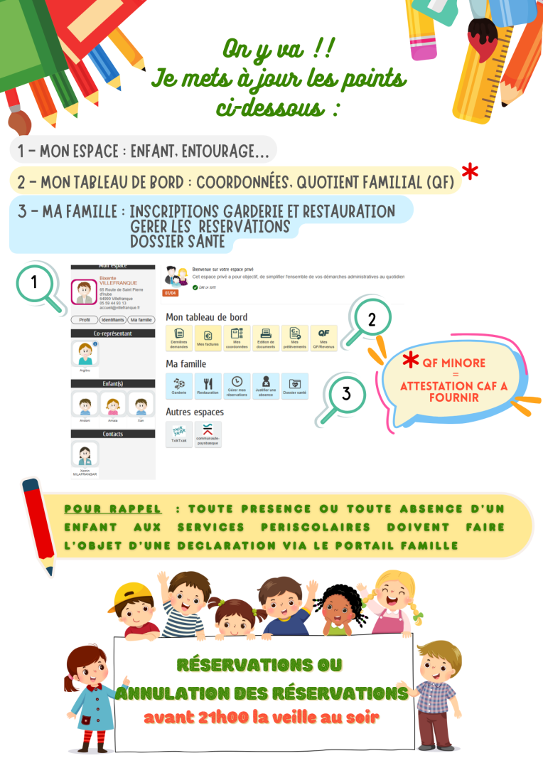 Pour rappel durant toute l’année scolaire, il est IMPERATIF de mettre à jour le portail famille :