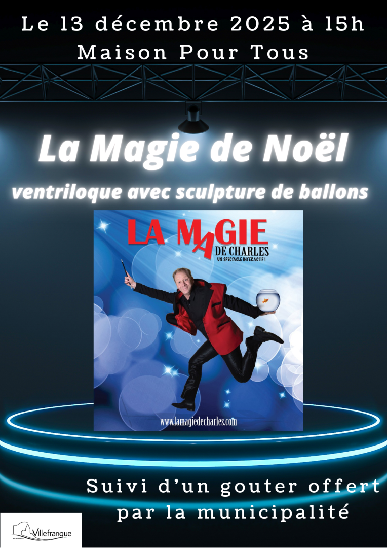 Nous vous donnons rendez-vous le 13 décembre 2025 à 15h à la Maison Pour Tous pour le spectacle de la Magie de Noël.
