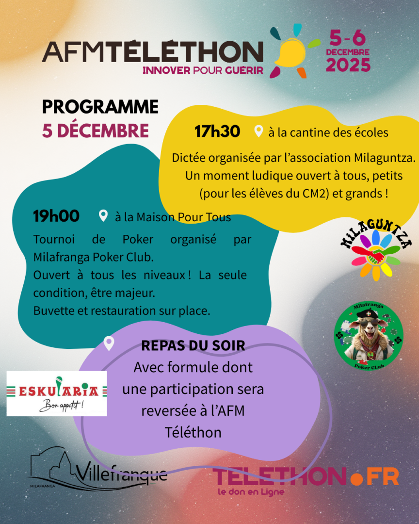 - 17h30 - à la cantine des écoles de Villefranque | Les dictées du téléthon par Milaguntza :